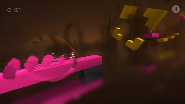 在游戏中奔跑的平台将分为红色与黄色两种,玩家在什么颜色的平台上奔跑,就需要让角色变身成为什么颜色,否则就会在瞬间粉身碎骨,