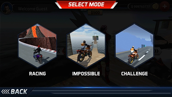 3、采用3D的画面设计,摩托外形精致,带来视觉上震撼。