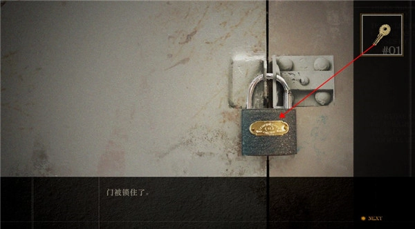 7、向右走到门口,调查门,用钥匙打开门锁。