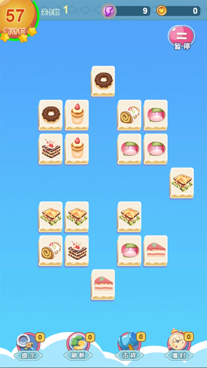 2、游戏规则很简单,将两个一样的美食连接消除,直到没有任何美食方块,闯关成功。