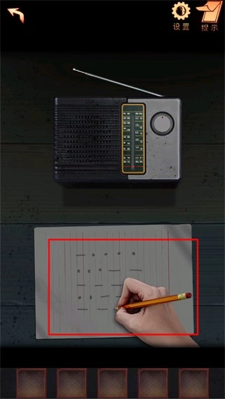38、点击写字台上的六边形盒子,使用道具:金属滑块。根据笔记本上的线索,调整滑块到正确的位置,打开盒子,获得道具:钥匙。