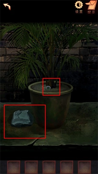 14、点击右侧和左侧的盆栽,获得道具:圆形滑块,石块