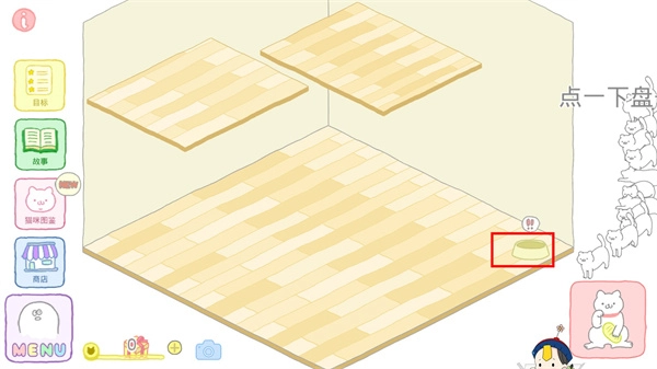 1、进入游戏后,能看到一个猫盆,只需点击它就能装上猫粮了