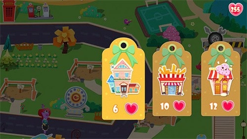 点击空地,选择「建筑商店」,用爱心兑换糖果屋、咖啡馆甚至摩天轮,每座建筑都能解锁新剧情和小游戏。