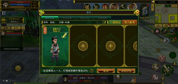 在前期升级阶段,优先推荐大侠去世界里面找其他大侠一起组队打怪做任务,因为组队可以增加经验值,队伍里每有一人就能增加10%的经验值,队伍人数上限是八人,也就是可以增加80%经验值,可以确保等级的快速提升。