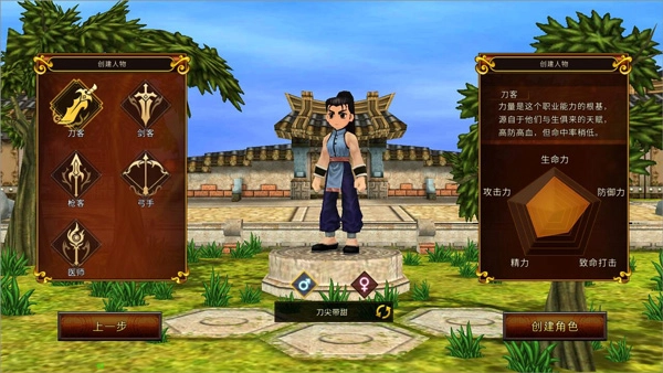 如果大侠喜欢跟其他玩家组队打怪,可以选择医师,医师能通过自身的技能给自己和队友补充状态。还有刀客、远程攻击的弓手可以选择。