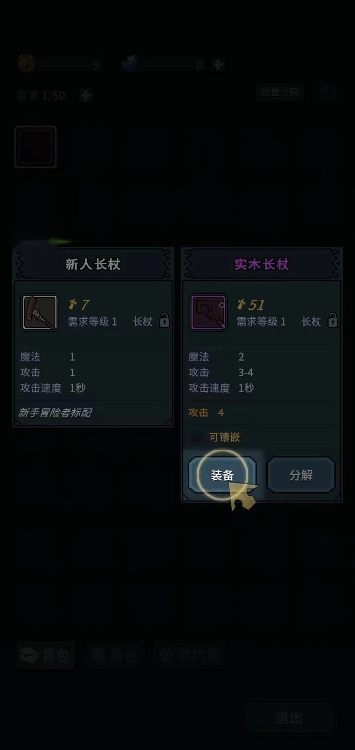 6、走到怪物身边角色就会自动攻击怪物,将怪物打倒后,可以拾取随机掉落的装备,用上后可以提高角色的攻击力。
