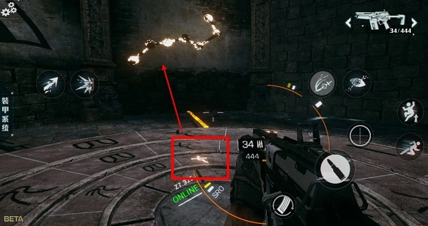3、瞄准敌人之后,我们连续点击子弹按钮可以持续开火。