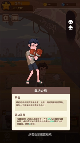1、首先进入《我不是废柴》游戏,你会从一个废柴的身份起步,学习一门功夫,像拳击这类。