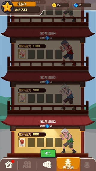 6、随后就可以挑战声望塔,获得更多的奖励,解锁更加厉害的武功。