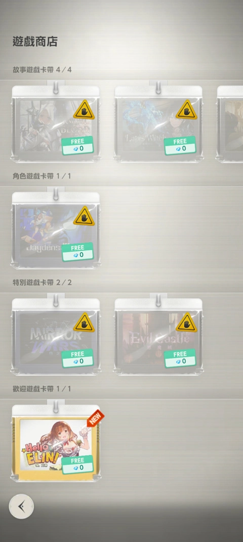 2、游戏以虚拟卡带方式进行,玩家需在游戏商店购买卡带开始游戏,初始会免费赠送玩家一个卡带;