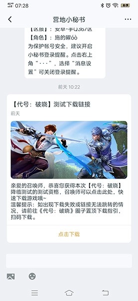 4、最后资格将会以站内信的形式通知,届时只需要查看自己是否收到了“营地小秘书”推送的消息即可,然后按照提供的教程进入游戏即可。