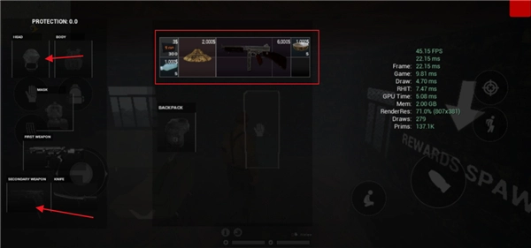 5、打开背包将武器放置在左边的武器槽中,资源则点击即可使用;