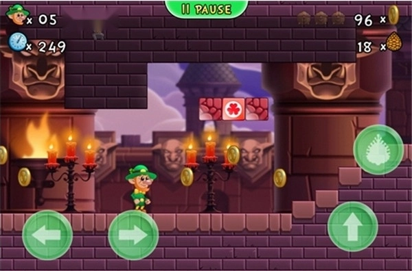 方法2、游戏中会出现三叶草的旗帜,玩家们操控主人公经过旗帜,旗帜会上升,这样就拾取到了一个三叶草。这里需要注意的是游戏中砖头出现三叶草的几率比较大,玩家们尽量撞碎每一块带有三叶草图标的砖头,即使没有三叶草也有道具和金币。