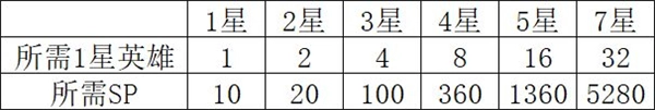 给英雄升星主要是提升英雄的攻速,增加少量的英雄攻击力。在游戏中,合成1个二星英雄,需要消耗2个一星英雄;合成1个三星英雄,需要消耗4个一星英雄。召唤所需的SP每次增加10点,因此将一个英雄逐级升至7星消耗的SP是非常高的。