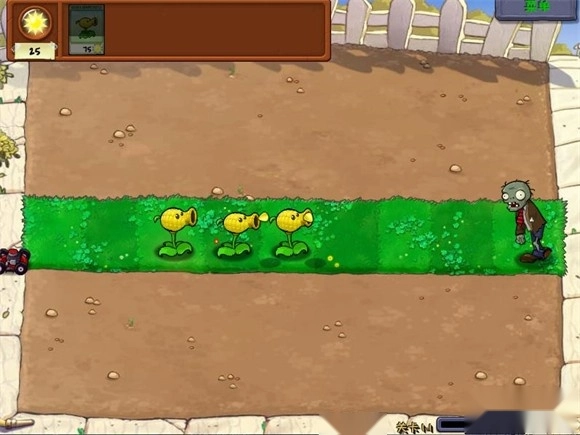 3、前面几关比较简单,消耗阳光就能种植植物,击败僵尸就能通关