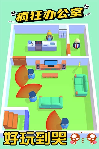 疯狂办公室游戏是一款休闲益智类的烧脑游戏,能让你体验到解压又有趣的游戏画面,多样的游戏场景等待你去挑战。你可以化身神秘特工潜入企业,获取机密文件,还要躲避安保设施和巡逻人员,各种滑稽搞笑的玩法等你来尝试!