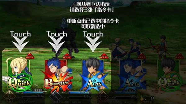 游戏的设定中每一个英灵都拥有战斗指令的设定,也就是我们在实战中所需要点选的战斗卡牌,它们分别是绿色的Quick、蓝色的Arts、红色的Buster三种,不同烈性英灵卡片的组成是不一样的,比如呆毛王偏重蓝色的Arts、狂战士偏重红色的Buster等等。