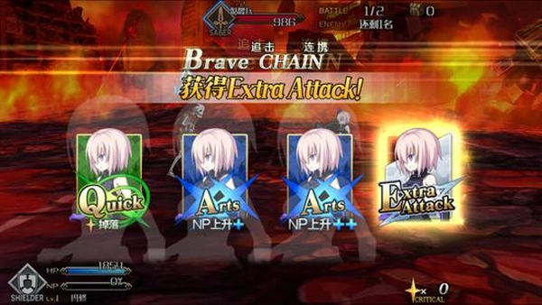 来看看游戏的玩法,尽管日服曾有玩家反馈游戏里“英灵战斗”的玩法略显单调,但实际上它的可玩性相当高。这种玩法带有回合策略的倾向,玩家仅有一次制定策略的机会,得通过“选择卡片”的方式确定三个行动指令,而游戏玩法的核心魅力恰恰体现在卡片式的战斗指令设计上。