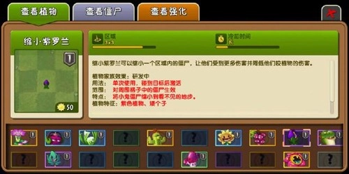 一般而言,大部分的植物子弹都只能向前面放,除了几个特别的植物外大部分的植物都没有自保能力,这个时候缩小紫罗兰的效果就显露无疑了,只是这个植物的冷却时间比较长,因此很少会有人选择带。