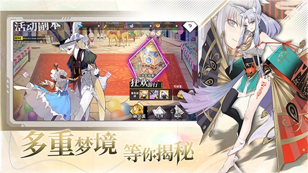 3、梦境场景探索,多重梦境地图,含剧情关卡、隐藏副本,探索解锁奖励与角色剧情。