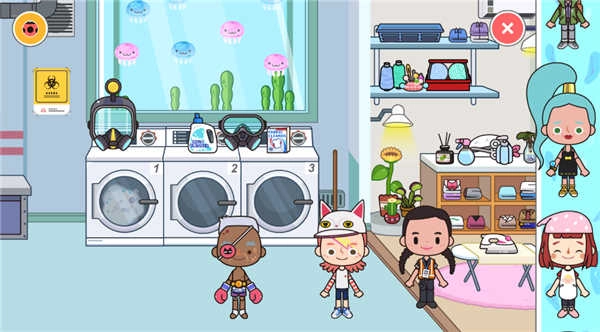 6、这里我们是进入洗衣房场景中,点击洗衣机可以将里面的衣服进行整理。