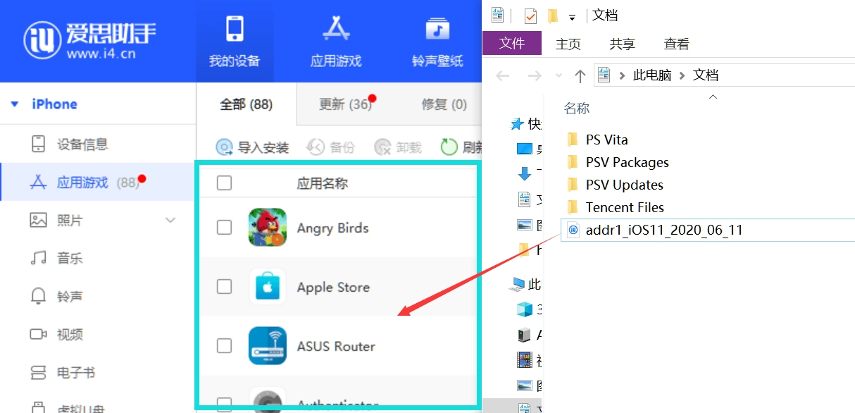 第七步、接下来把签好名的IPA文件拖到当前手机的应用游戏列表里,就能完成IPA文件的安装,等安装结束就可以了。