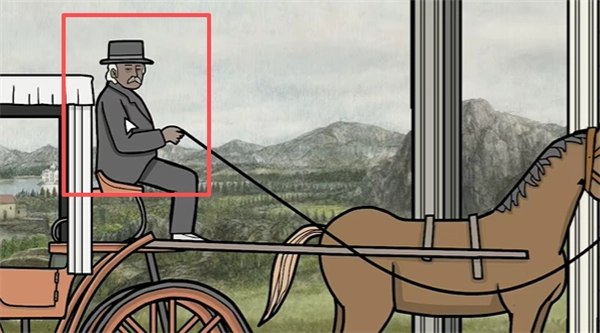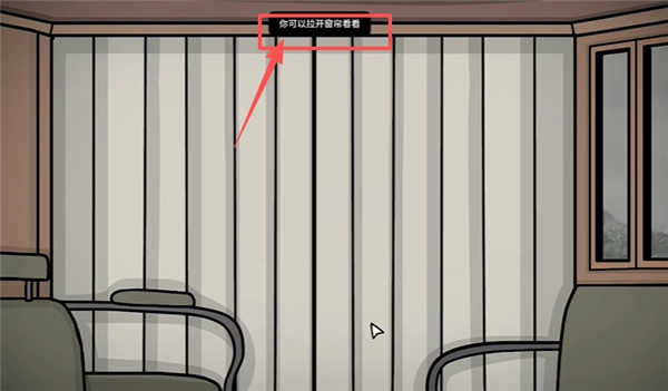 2、我们首先在马车上,根据提示我们可以拉开窗帘看看。