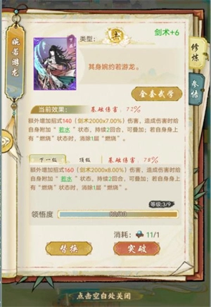 1、外功升级:对已获取但未使用的外功进行升级同样能提升剑术。外功升级的优先级为:紫色>金色>红色,其中性价比更高的升级方案是将紫色外功升至三级满阶。至于功法参悟(即升星),快捷操作方式为:点击左上角头像下方的“变强”→进入“武学提升”→选择“武学升重”。