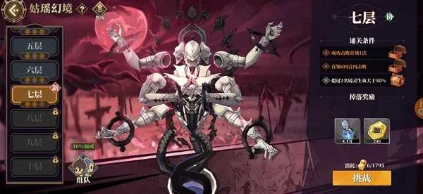 (2)灾祸之渊:和上一个幻境一样分为10层,挑战成功后会开启下一层的挑战资格,同样也是先杀小怪后杀BOSS,灾祸之渊副本是获取觉醒材料的主要途径。