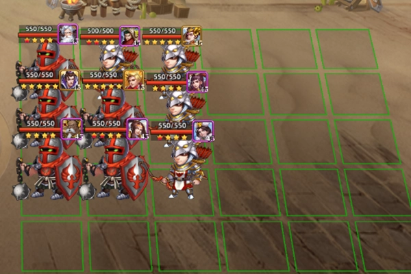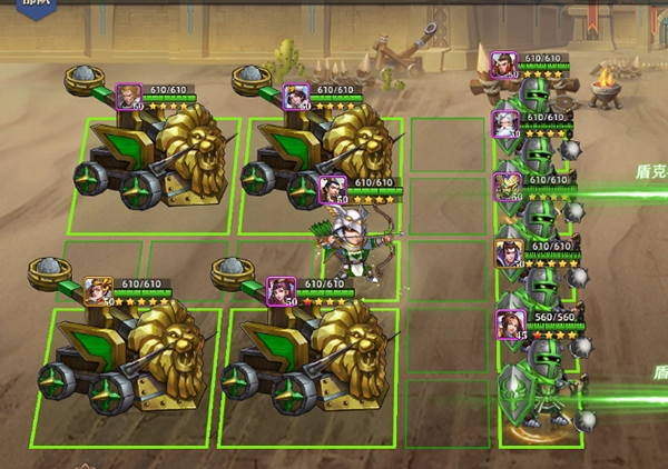 该阵型不仅在攻城战里适用,在单挑战斗,以及竞技场战斗中也很实用:能在一定程度上打赢比你战力强的正常阵容对手。