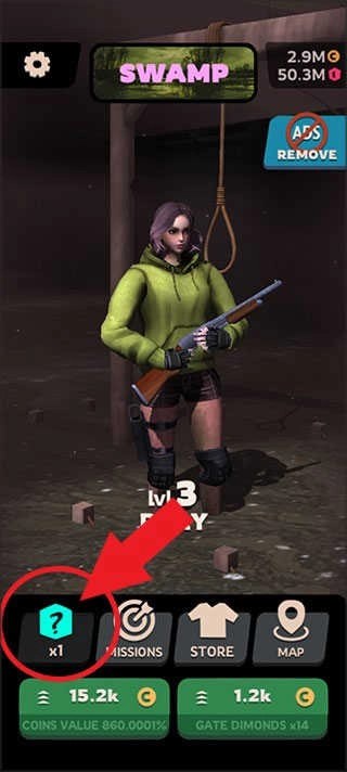 玩家点击首页问号按钮,即可获得一把随机武器进行游戏。