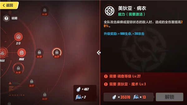 病衣则是为全队提供一个加伤,由于麻痹和雷锁触发条件相对简单,但是病衣等级靠后,属于后期技能。