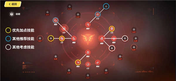 因为升级技能的奖励都是一样的,所以优先点出哪个技能都是可以的,并没有固定的路线。