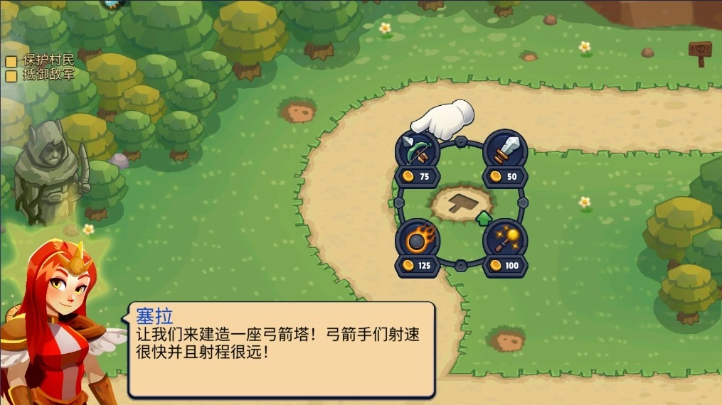 2、开始前先建造一座弓箭塔。