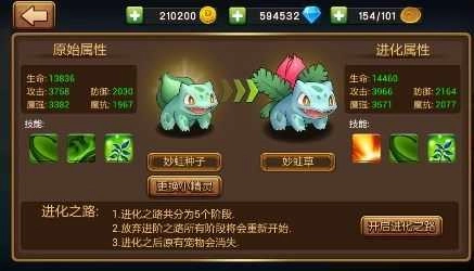 小精灵最重要的是什么! ! !进化! ! !进化对于小精灵的战力提升效果更是不言而喻,玩家需要在研究所完成进化任务才能进化宠物。进化后宠物的技能不仅更强大,而且属性也会有大量的提升哦!