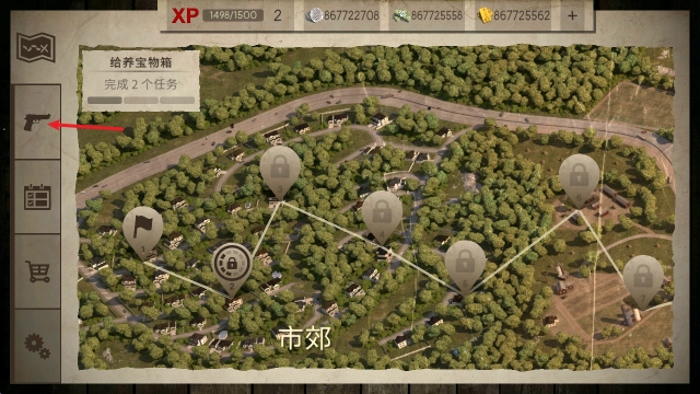 回到主界面后,点击左侧的手枪图标,即可进入枪库。