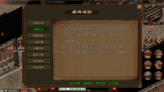 5、有条件的玩家可以开启10元首充和18元技能礼包*2,选择道士10元首充礼包会额外提升道士的打怪伤害,持续到二合之前。18元的礼包开局就能领取强化骷髅,能节约大量的打小怪的时间。