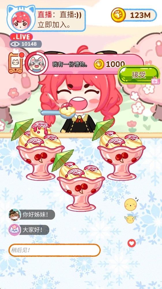 冰淇淋达人正版,和糖葫芦达人玩法相同的趣味吃播游戏,围绕制作各类特色口味冰淇淋展开,为你带来一场精彩的吃播盛宴!在游戏里,玩家将化身美食主播,每天在直播间制作不同冰淇淋并进行吃播展示,给观众带来别样的体验!另外,还能去超市采购奶茶、意大利面、鲷鱼烧等全球各地的美食,让直播内容更丰富!