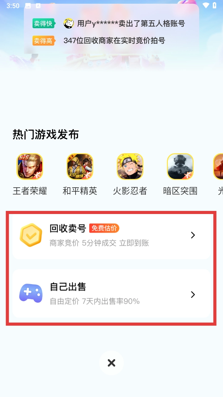 4、支持回收卖号功能,还可以自己出手闲置账号,这需要登录之后才能使用。
