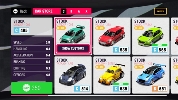 5、比赛结束后会获金币奖励,这些金币可以前往汽车商店来解锁新的车辆。