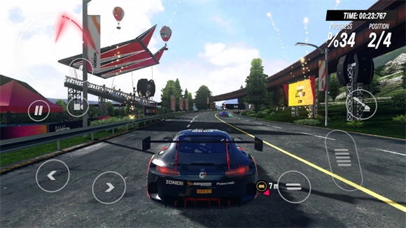 4、在比赛中操控自己的赛车超越对手来取得更好的名次,顺利抵挡终点就可以赢得胜利。