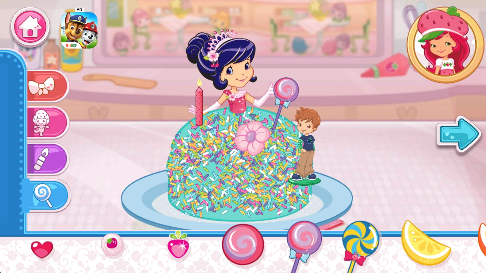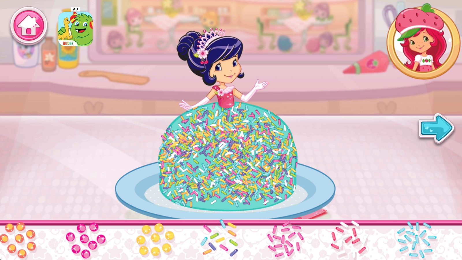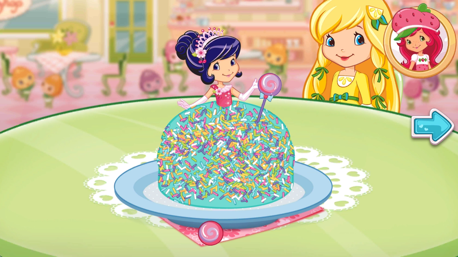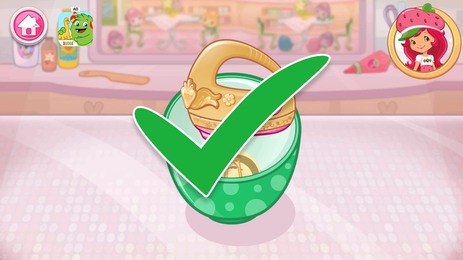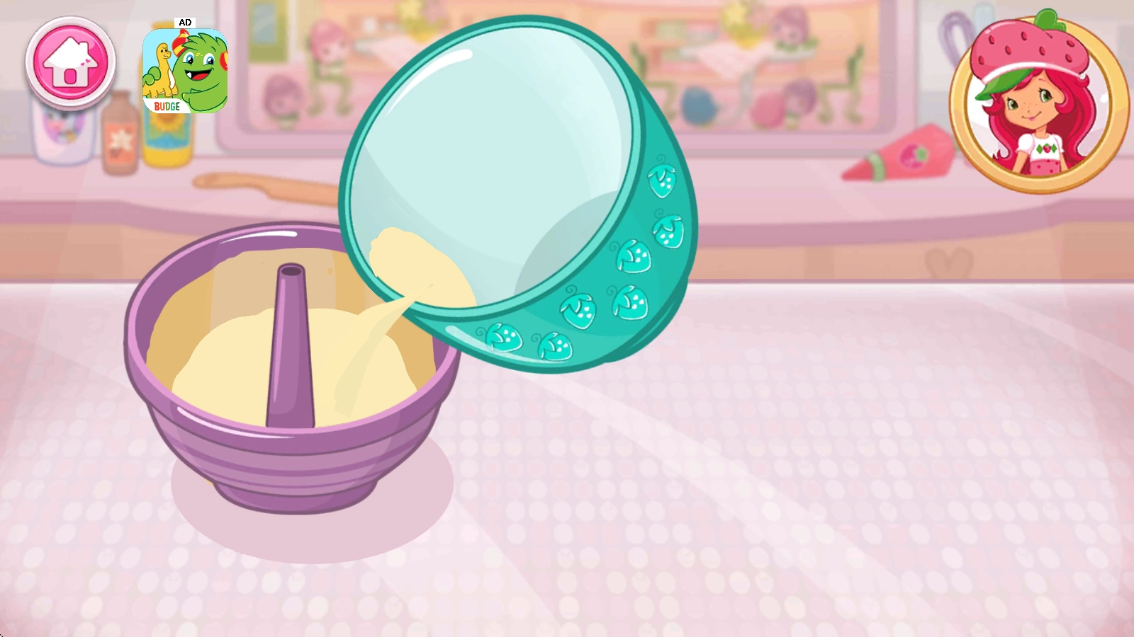 草莓甜心烘焙店,英文名为Strawberry Shortcake Bake Shop,是一款画风温馨可爱、玩法休闲有趣的甜品店模拟经营游戏。在游戏里,玩家将亲自经营一家烘焙店,主要制作各类美味的甜品、蛋糕与饮品,每一份食物都由你亲手完成!而且,按照食谱做好蛋糕后,还能自由DIY,给蛋糕添加漂亮的装饰品,打造出专属于你的独特蛋糕!