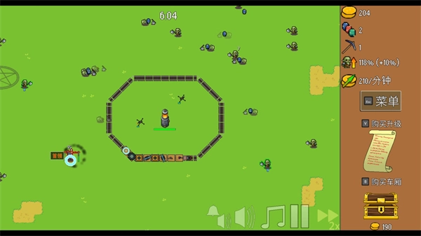 4、购买好车厢后火车会自动前进,遇到怪物会自动进行攻击。
