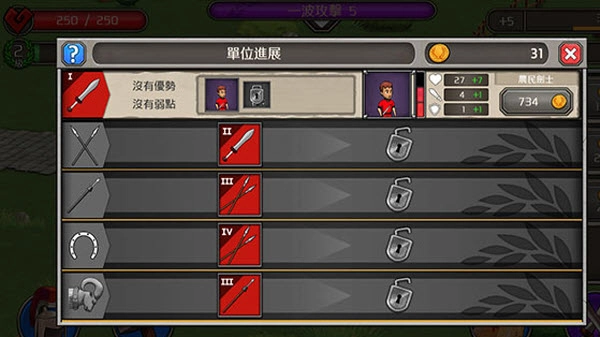 2、点击普通按钮旁边的单位按钮,就可以打开兵种界面进行兵种升级。