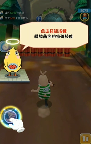 《逃亡兔》是一款改编自同名动漫的3D跑酷游戏。玩家可以随时开启一场充满趣味的跑酷之旅,只需操控好角色,就能持续向前奔跑。遇到障碍物时要迅速躲避,同时还能收集大量胡萝卜和各类道具,轻松获取高分。游戏还包含飞檐走壁、BOSS大战等多种趣味玩法,玩家可直接挑战这些内容。