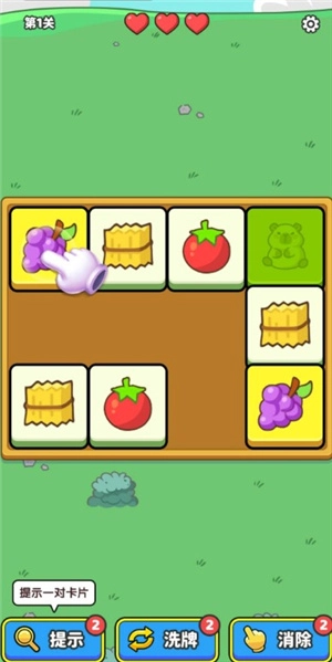 下面的道具总共有三个,依次是“提示”“洗牌”和“消除”,它们各自具备不同的功能。