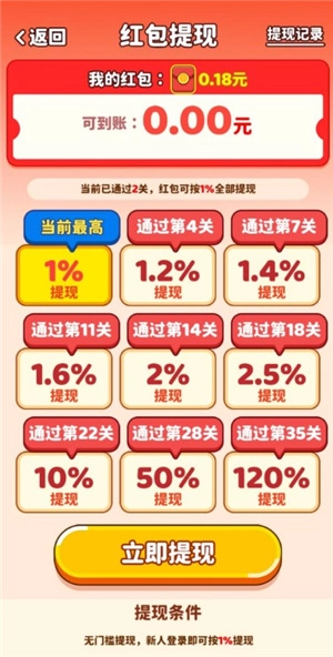 3、要想提升兑换比例,还得多闯关,比如通过4关,比例就能到1.2%。