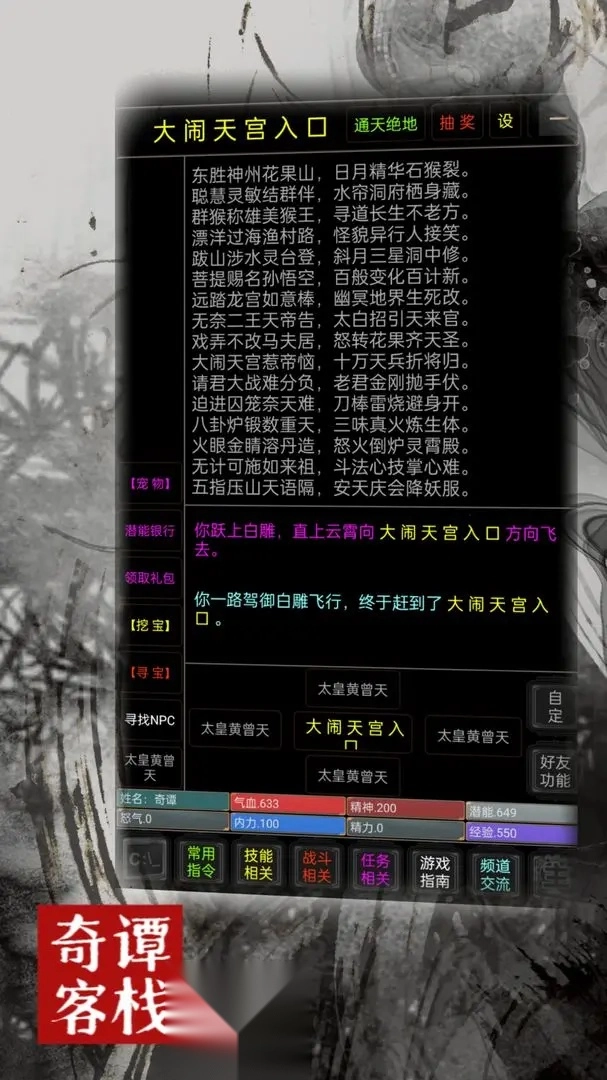 2. 适合喜欢文字游戏、修仙题材以及MUD类型游戏的玩家,能带来全新的游戏体验。总体来说,奇谭客栈是一款满含幻想与挑战的修仙游戏,适合各类玩家在此寻觅乐趣。