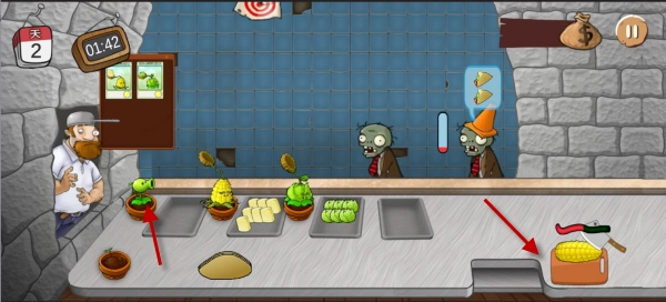 2、接着点击右边的食材和豌豆射手,提供另外的两种食材。